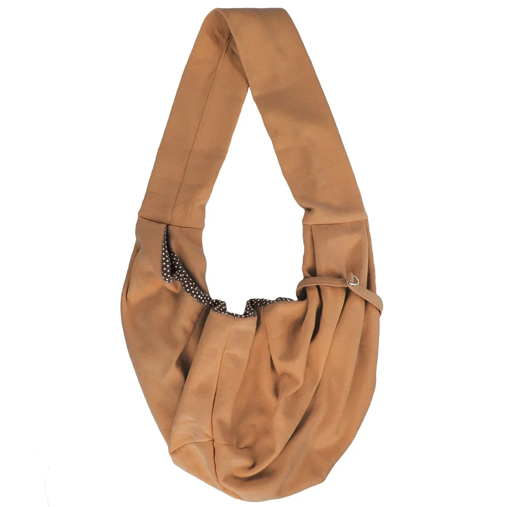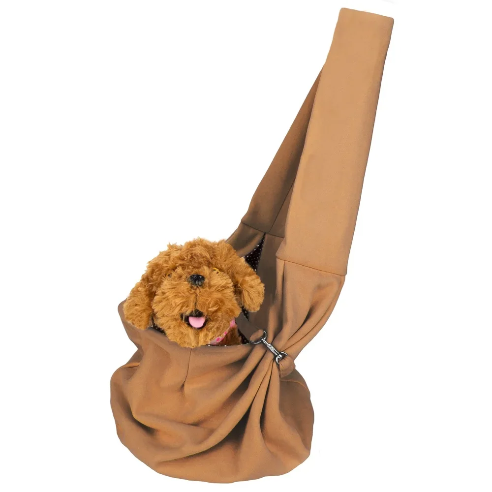Hands-free sling-style carrier loops over shoulder while the pet rests in the pouch on the opposite hip to keep pet secure and comfortable